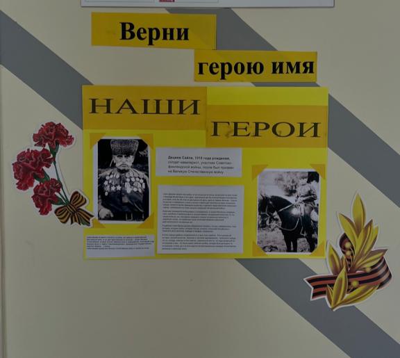 10.05.2024Учащиеся нашей школы стали участниками всероссийской военно-патриотической акции «Верни герою имя». Одними из задач акции являются сбор и распространение информации о воинских и трудовых подвигах земляков среди населения и расширение и укрепление знаний детей и подростков о героическом прошлом предков и земляков. Участники военно-патриотического клуба школы оформили уголок с информацией о герое Великой Отечественной войны, уроженце нашего села. Классными руководителями проведены уроки мужества «Жизнь, отмеченная звездой», «Помним и гордимся».